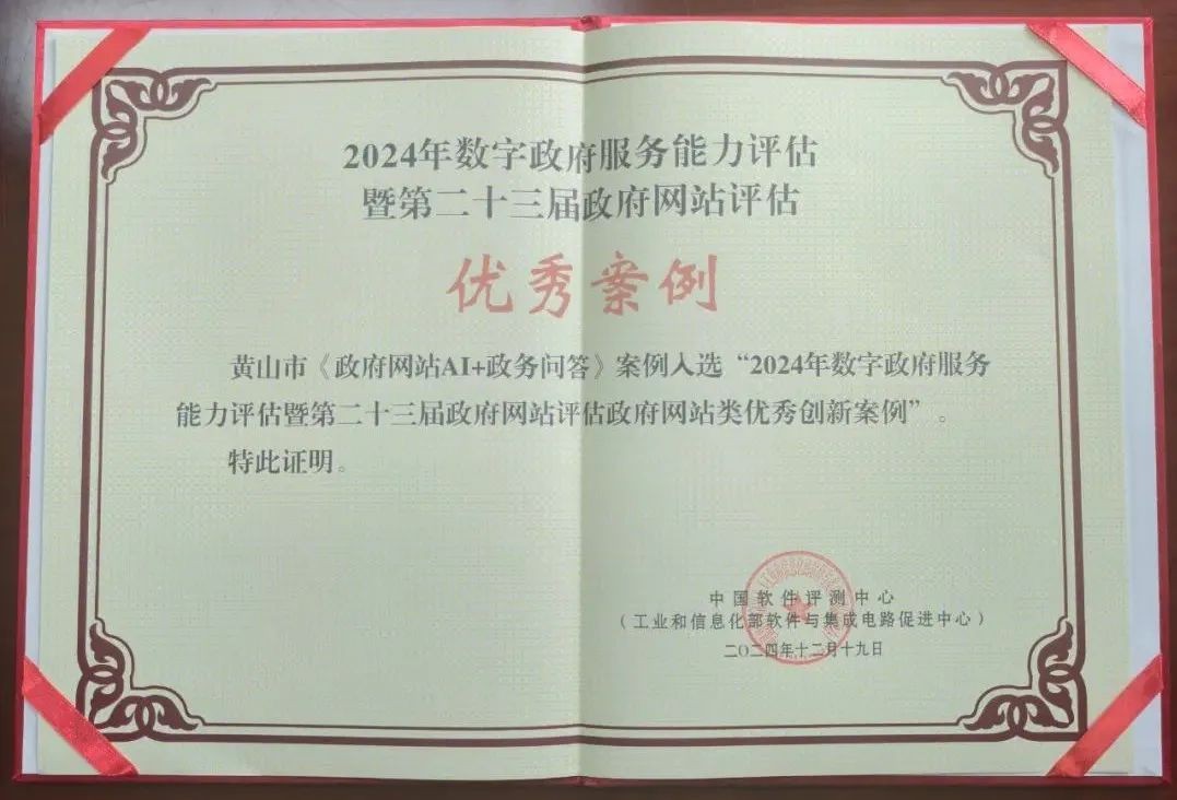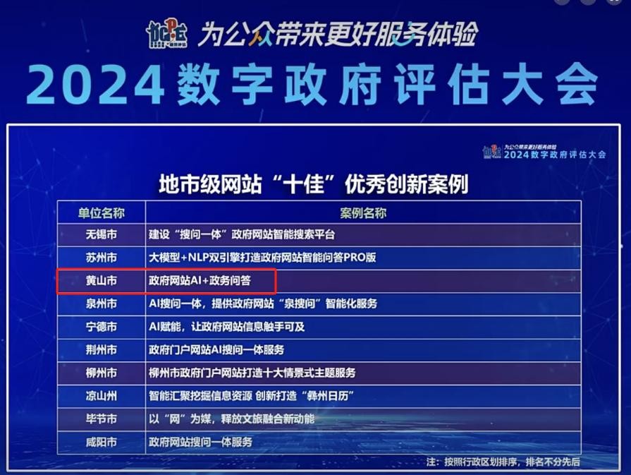 黄山市“政府网站AI+政务问答”入选全国地市级政府网站“十佳”优秀创新案例