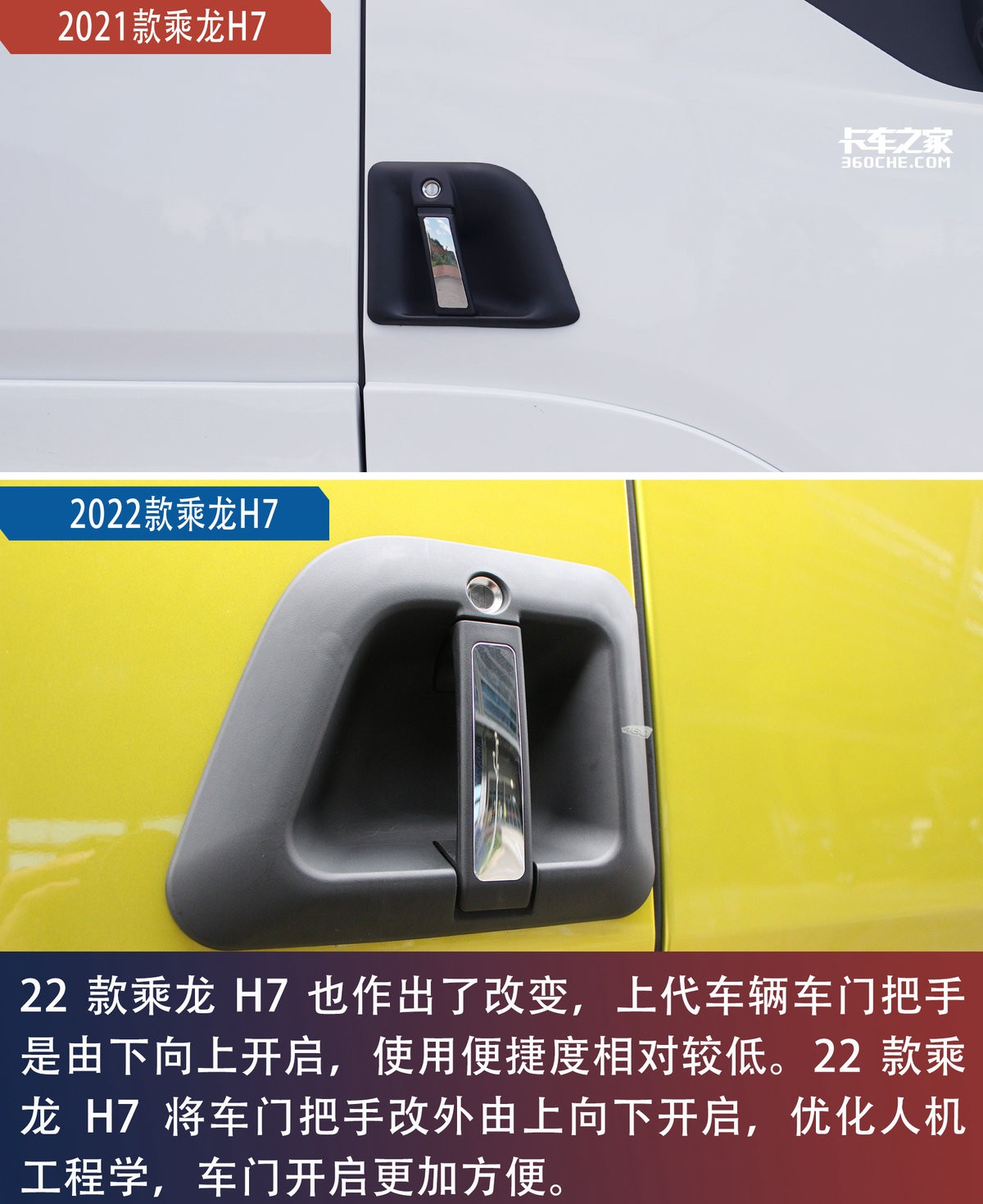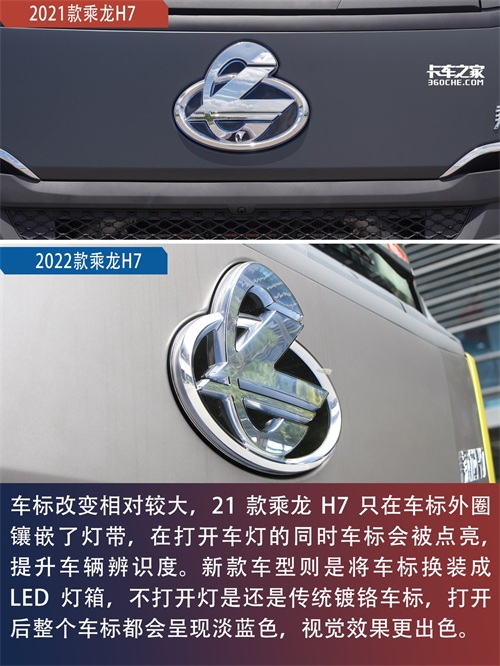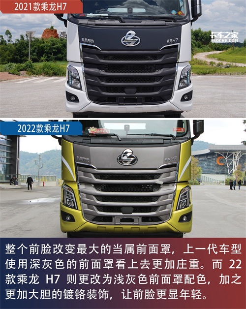 其实对于一台车来说,外观绝对是能抓住人比较重要的一点,在这我们先称上一代乘龙H7为21款,新款为22款。