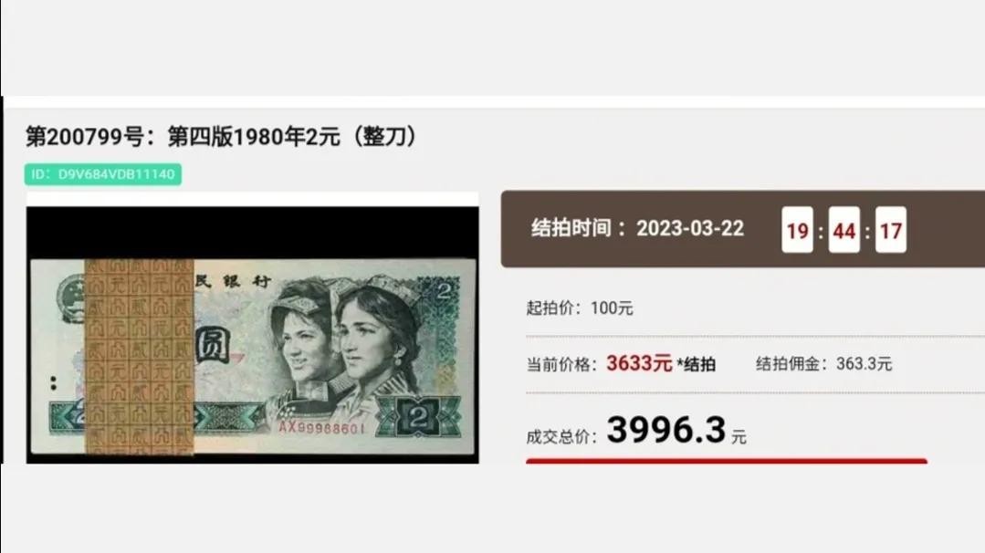 在2023年的一场“春秋大拍”中,就拍出过1980年的“整刀”系列,价值在3996.3元!
