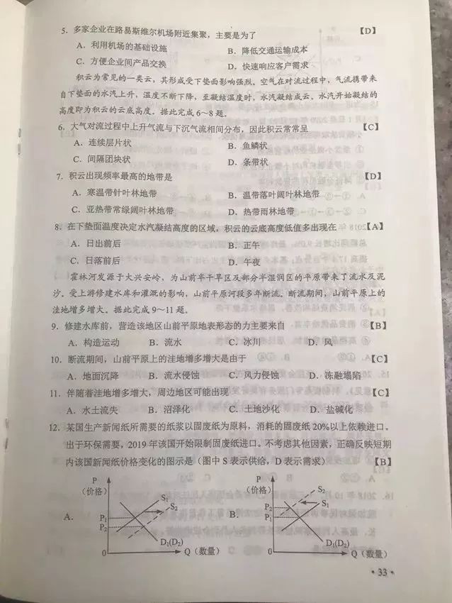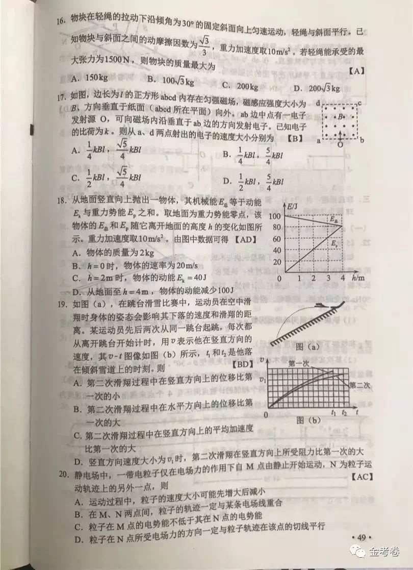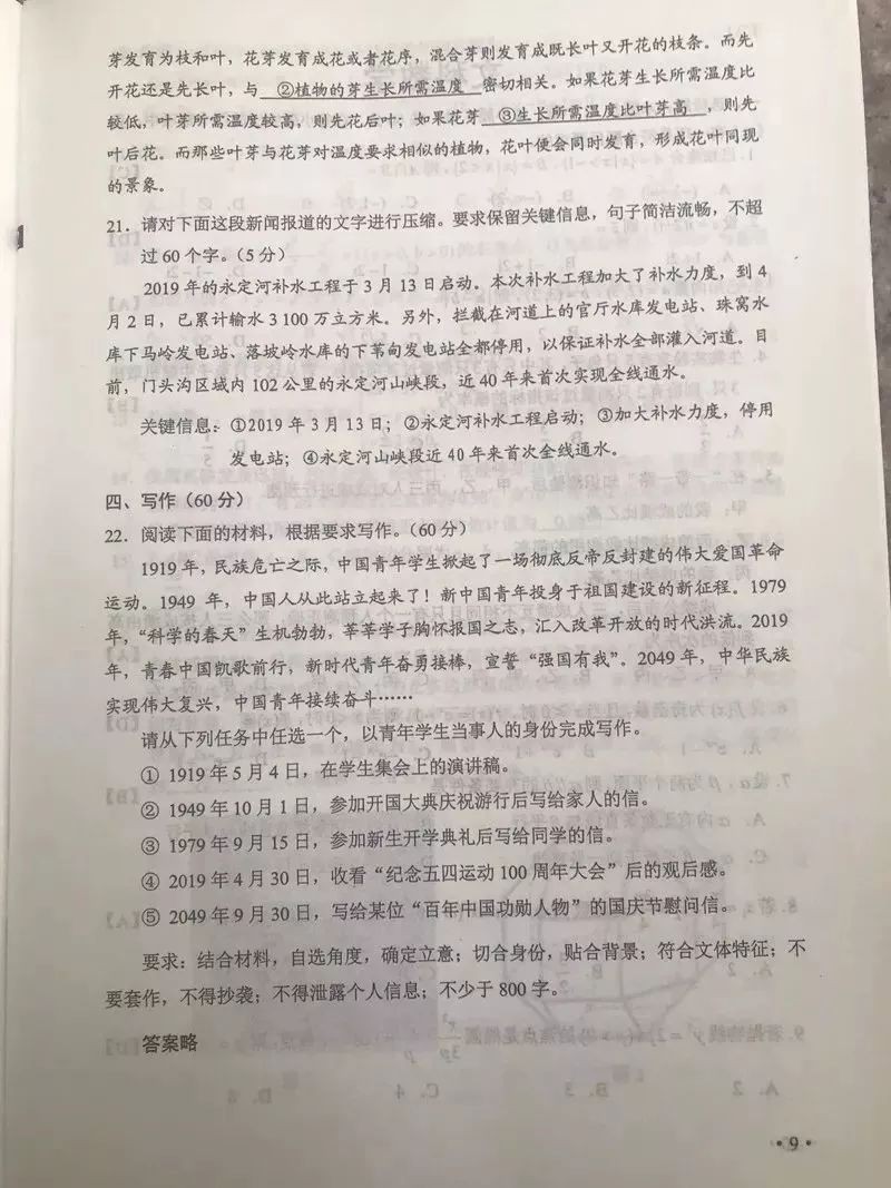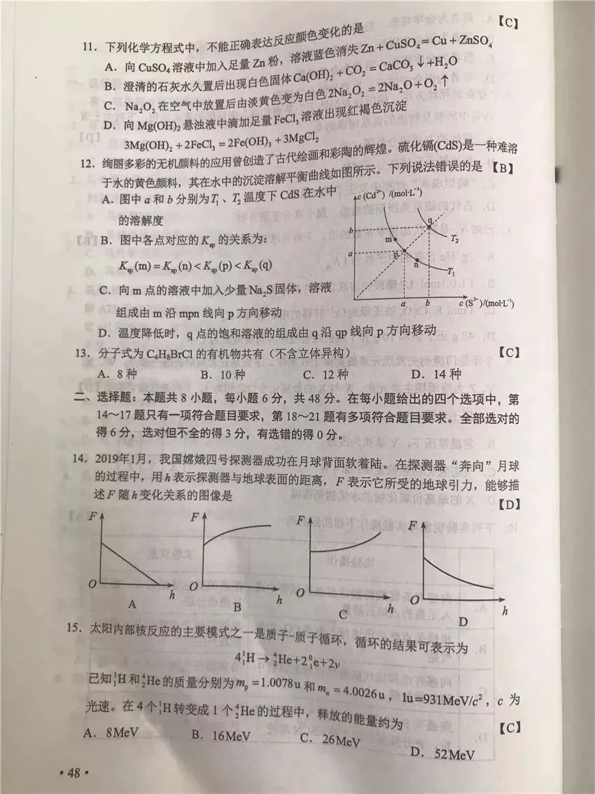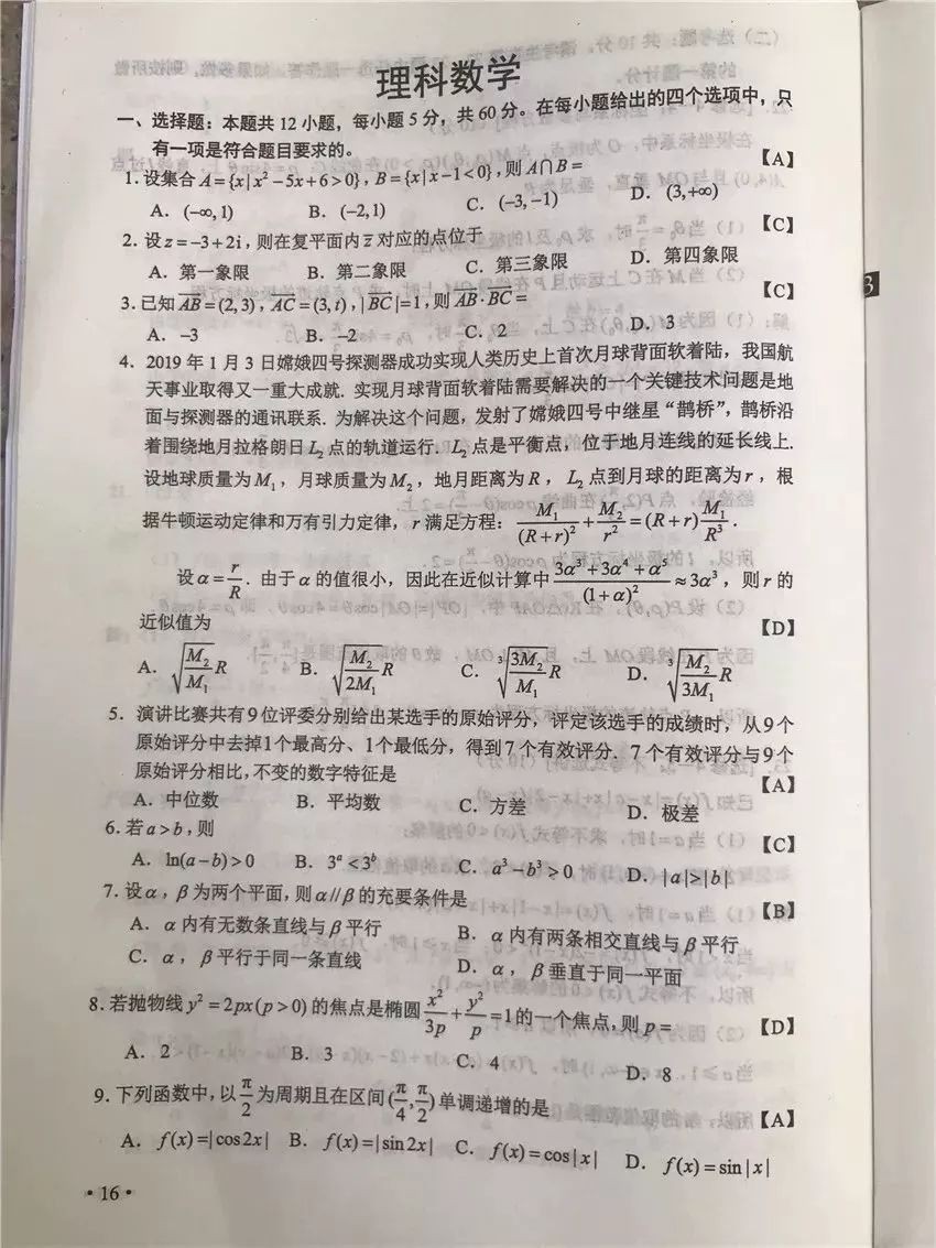 2019年高考【全国二卷】各科真题及标准答案(官方高清)