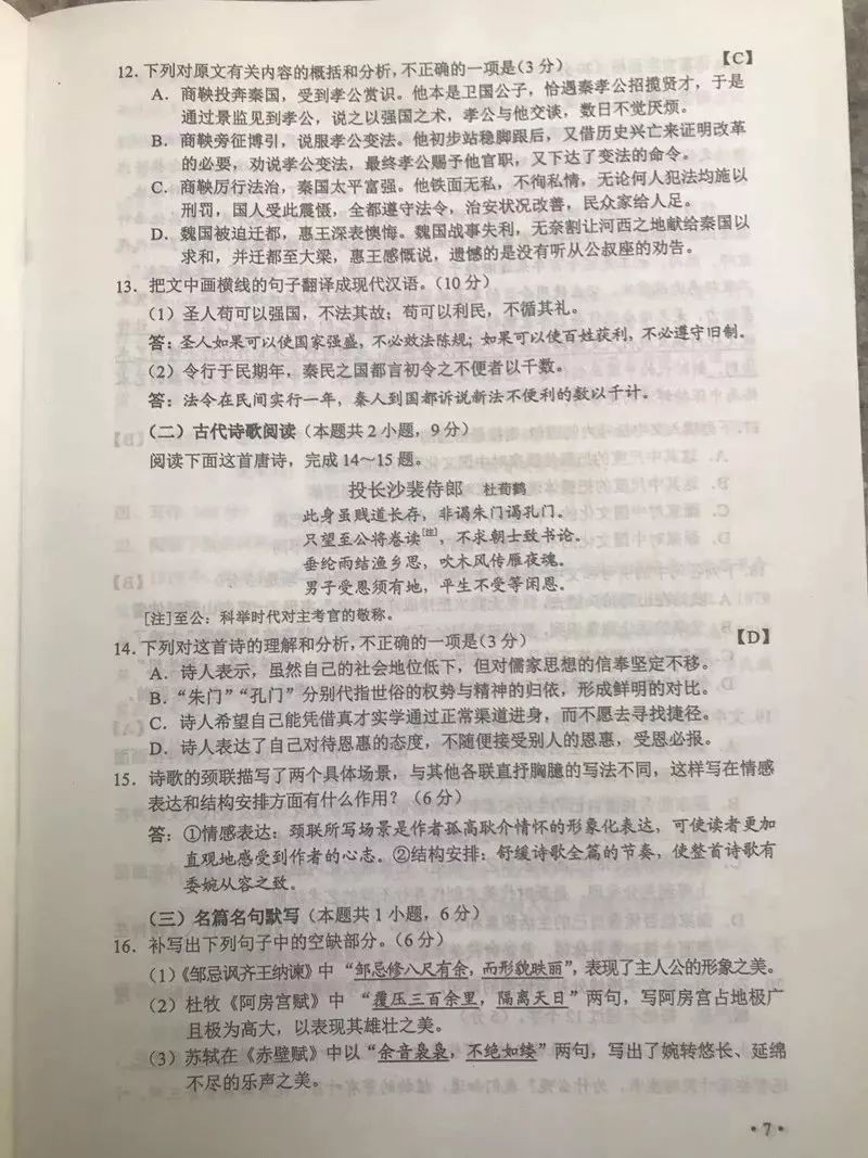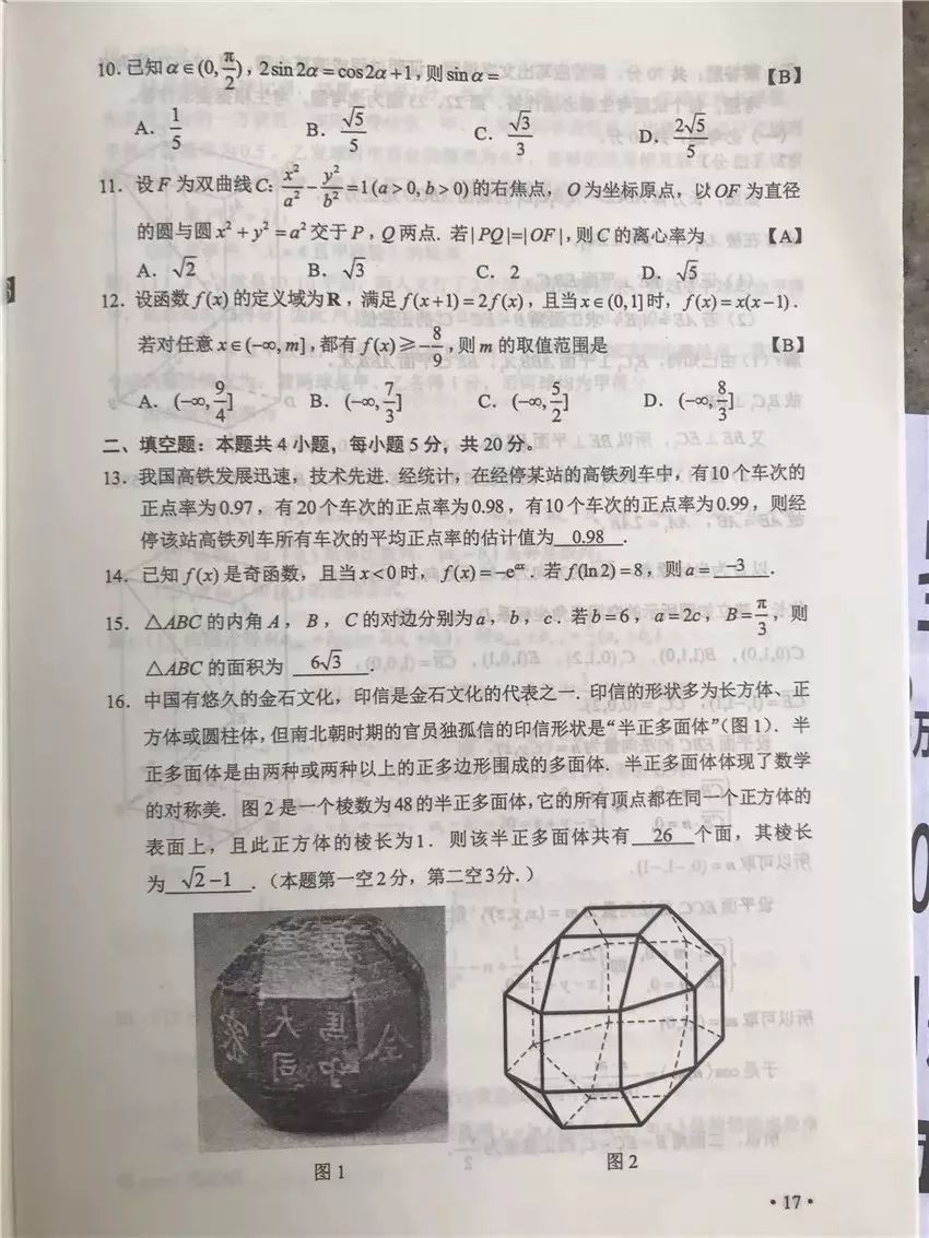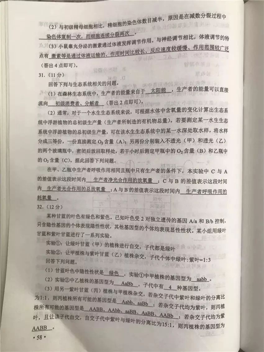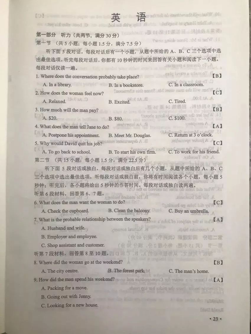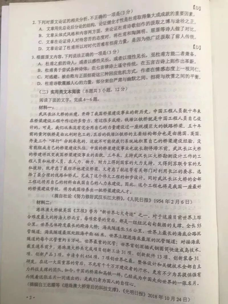 2019年高考【全国二卷】各科真题及标准答案(官方高清)