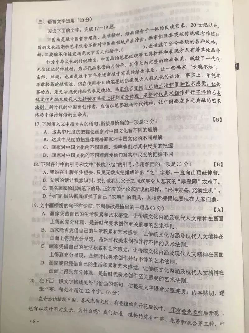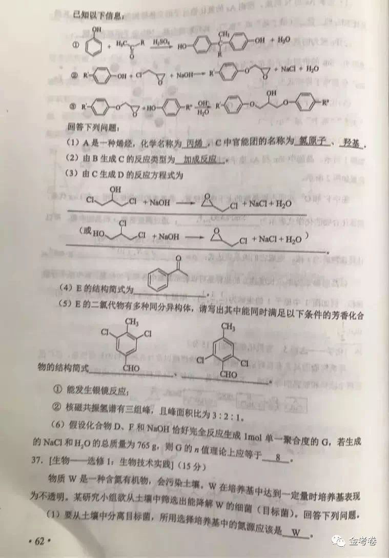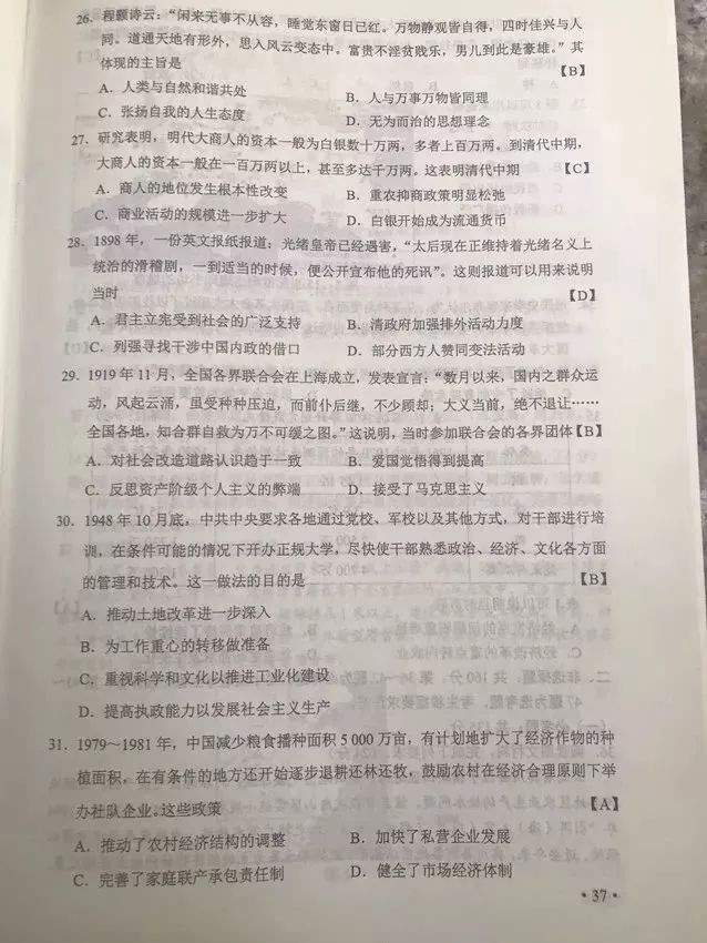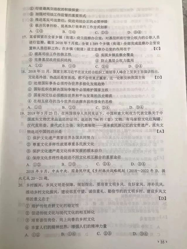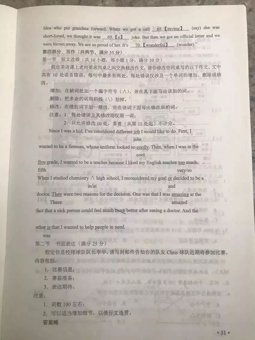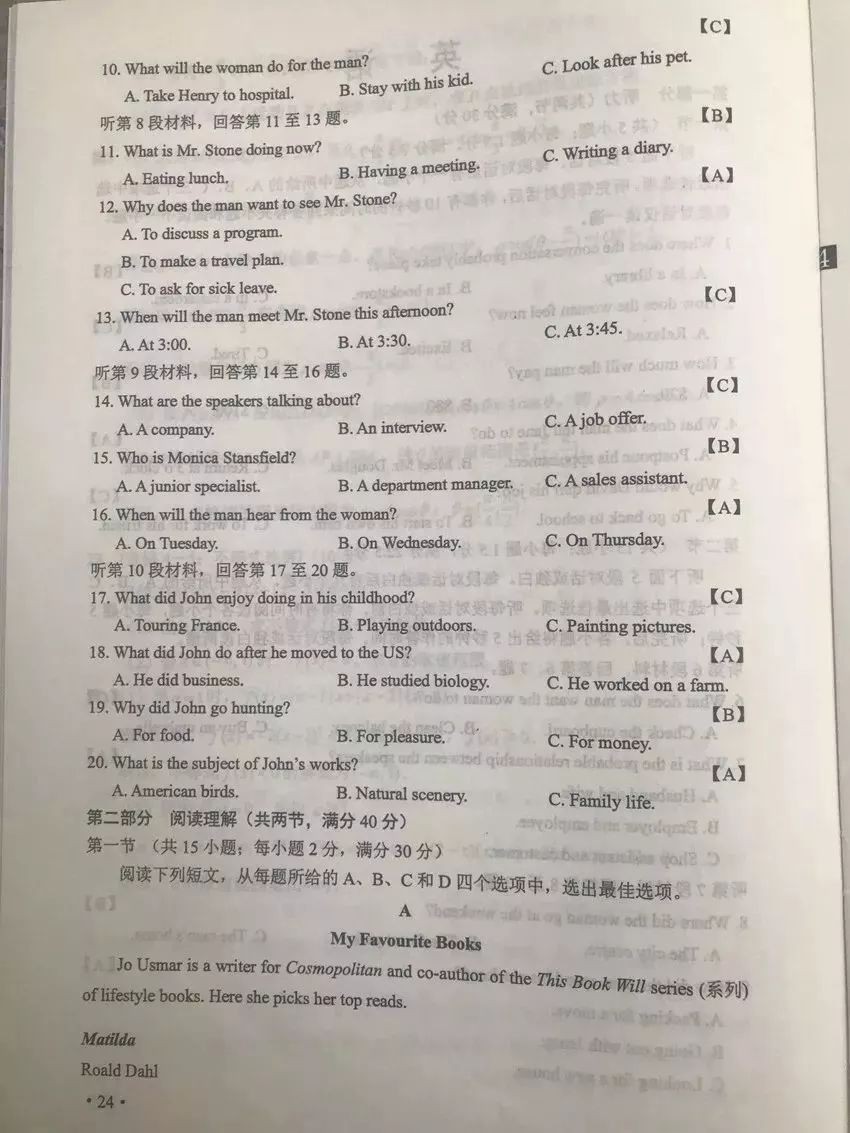 2019年高考【全国二卷】各科真题及标准答案(官方高清)
