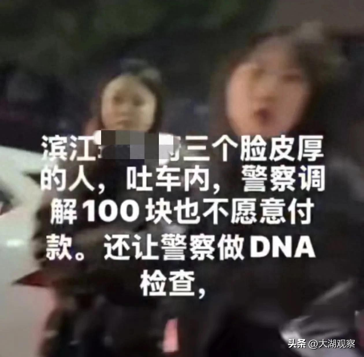 2月23日,浙江杭州,三名女乘客共打一辆车,其中一位女子酒后吐在出租车上,司机要求支付200元洗车费,双方协商不成,发生争吵。