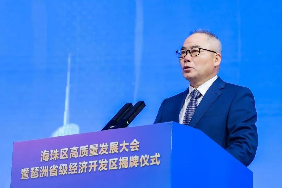 为贯彻落实中央经济工作会议及省、市高质量发展大会精神,大力提振市场信心,凝心聚力共谋海珠区高质量发展,根据区委、区政府工作安排,于2023年2月3日召开海珠区高质量发展大会暨琶洲省级经济开发区揭牌仪式。市工商联副主席、海珠区工商联主席、广州华新集团有限公司董事局主席、广州市社会组织联合会会长冯耀良受邀出席揭牌仪式,并代表区工商联、华新集团在会上发言。
