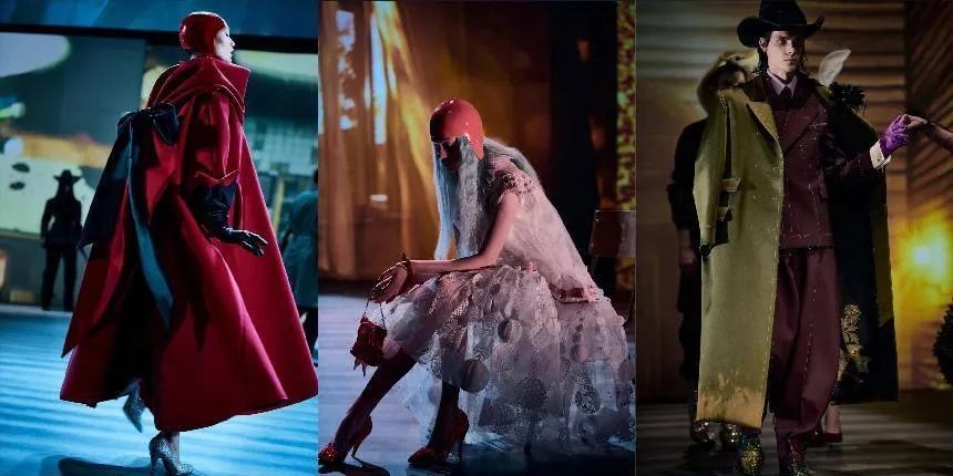 以舞台剧的形式呈现,服装的材质、结构、色彩等各种元素在他手里被解构重组得出其不意又高级有趣,由模特带领观众融入故事中去理解服装。