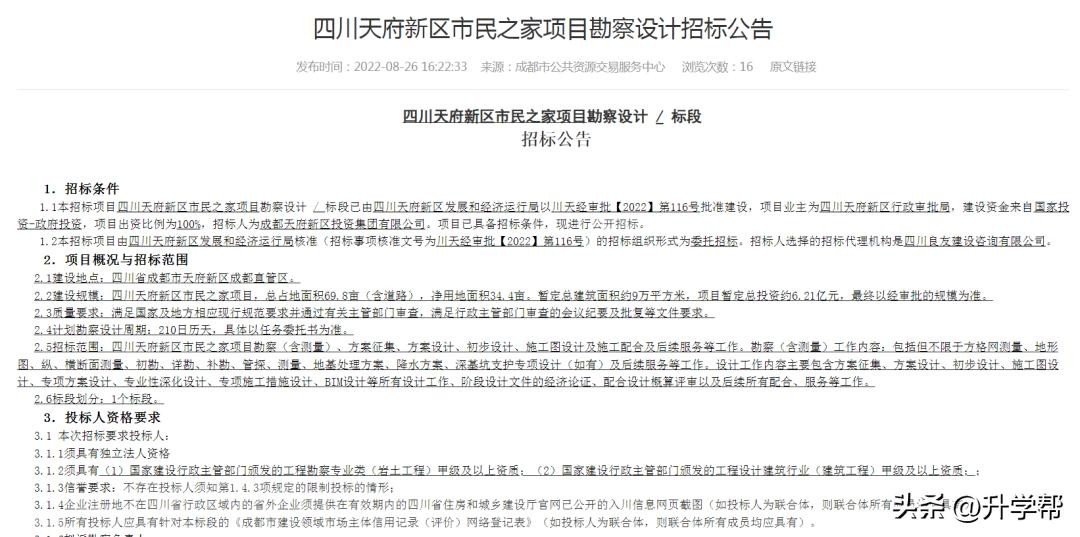 网友提到的天府新区市民中心最早出现在2022年,项目曾公开进行招标,当时网传的建设位置在天府大道以东,武汉路以北,邻近麓湖生态城与天府中央商务区。