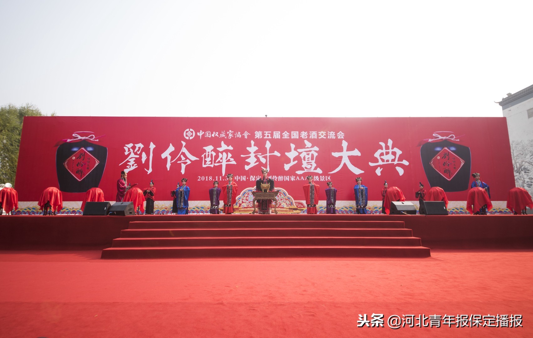 11月3日,2018年度刘伶醉封坛大典暨中国收藏家协会第五届全国老酒交流会在保定市徐水区刘伶醉国家AAAA级景区举行。大典中,刚刚封坛的10坛千斤刘伶醉酒被现场一位嘉宾以35万元的高价拍得。