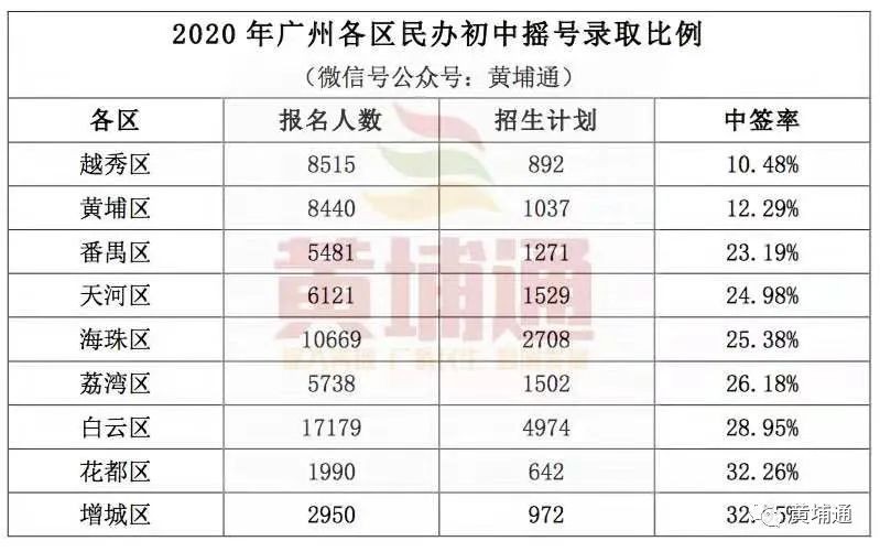2020年黄埔民办初中摇号中签率低至12.3%