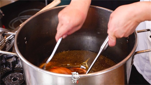 把炸好的童子鸡下入锅中进行卤制,鸡肉软烂入味就可以,如果不喜欢吃非常软烂我们可以卤时间短一些也是可以的。