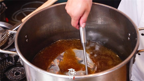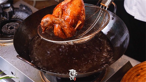 裹糖上色的童子鸡放一旁备用,沥干水分。