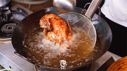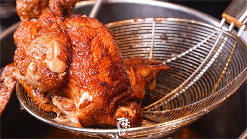 主要就是把童子鸡炸熟炸颜色上色就可以,这个可以慢慢炸也不需要炸非常熟透,稍微看到鸡肉表皮金黄就可以。