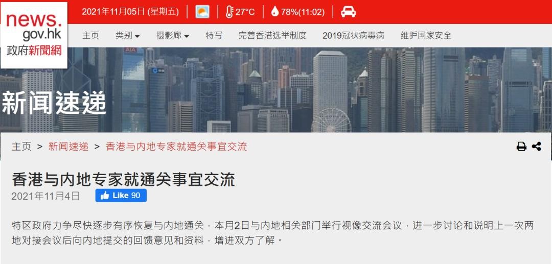 据香港特区政府新闻网消息,特区政府力争尽快逐步有序恢复与内地“通关”,本月2日与内地相关部门举行视像交流会议,进一步讨论和说明上一次两地对接会议后向内地提交的回馈意见和资料,增进双方了解。