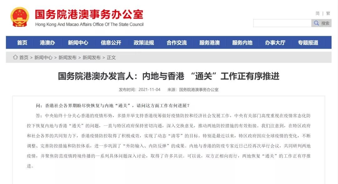 香港与内地何时“通关”?港澳办、特区政府纷纷回应!