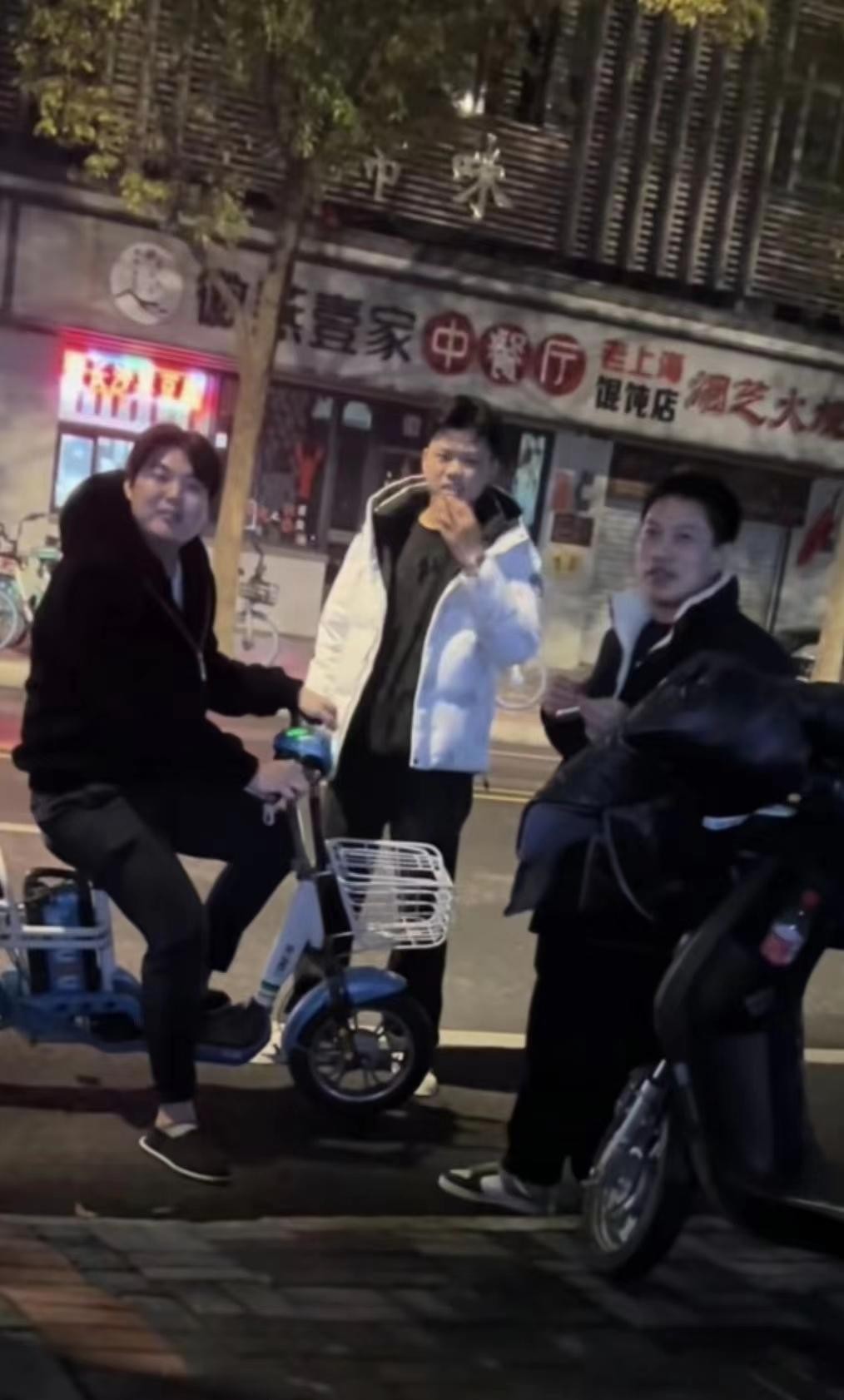 12月10日晚上,拍摄视频的满女士和朋友正在马路边等车,这时候两辆电动车骑行路过,然而刚没骑过去几十米就停下来了,从照片上看应该是两辆电动车三个人,然后其中一个骑蓝色小电车身穿黑色连帽外套的男士就扭头冲着两位女士喊了一句:“5000块钱”