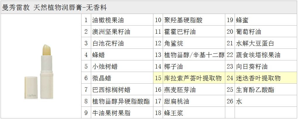 这款口红号称 “健康唇膏”,有多健康呢? 我们来对比一下曼秀雷敦的一款唇膏
