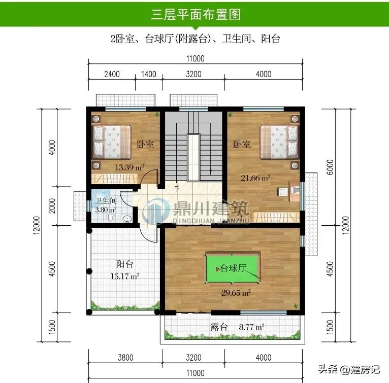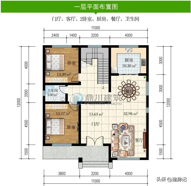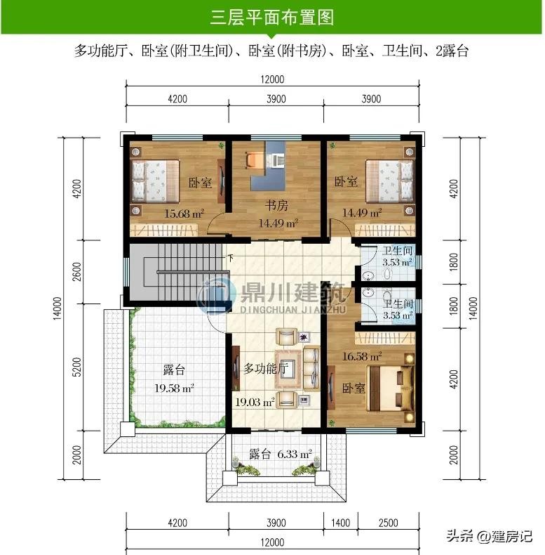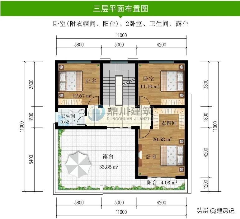 别墅图纸编号: DC1153,砖混结构,开间11米,进深12米,占地面积132.81平方米,建筑面积399.40平方米,主体造价40-50万。