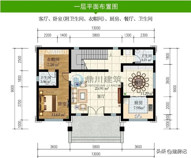 别墅图纸编号: DC1146,砖混结构,开间13米,进深9米,占地面积115.36平方米,建筑面积327.06平方米,主体造价33-38万。