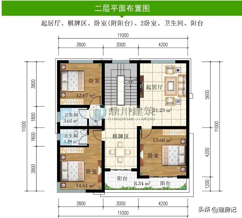 别墅图纸编号: DC1015,砖混结构,开间11米,进深11米,占地面积127.12平方米,建筑面积345.35平方米,主体造价35-40万。