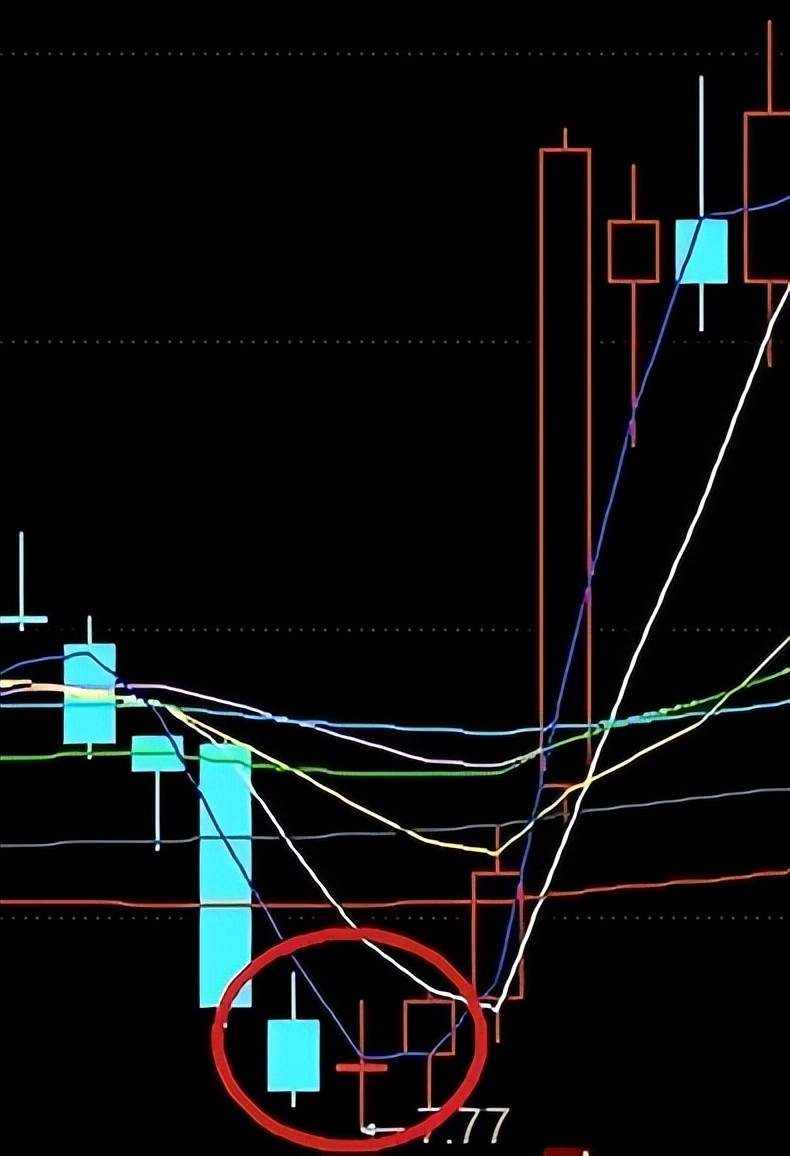 在下跌趋势中,出现一根带长下影线的阴线,紧接着出现一根小K线,第二根K线的实体及阴线,完全处于前跟K线的长下影线之内,此时意味着下跌行情可能发生反转,被称为下跌尽头线。