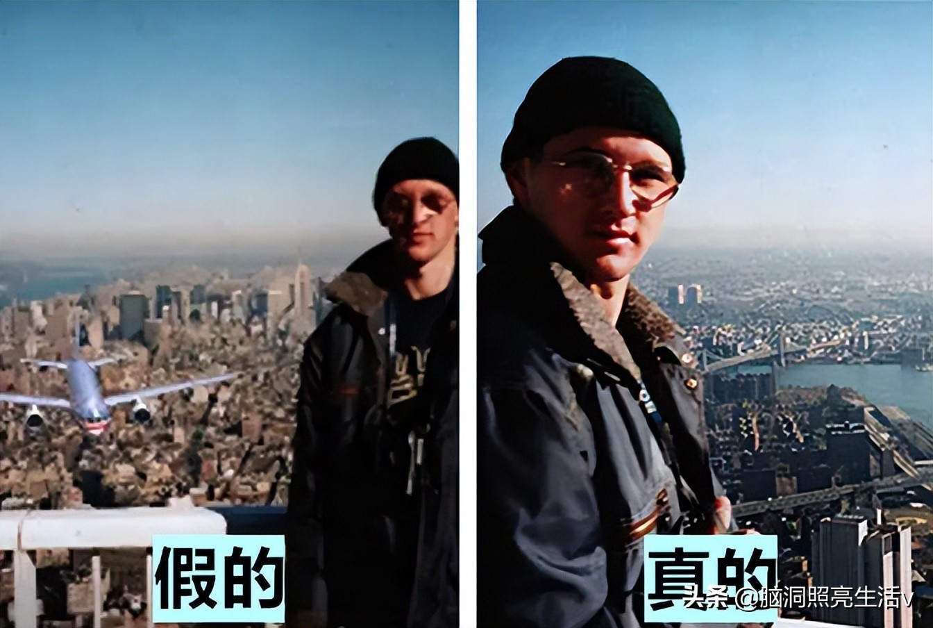 在911事件发生不久,有人上传了一张照片,照片里有一名男子在世贸中心观景台上,而他的身后有一架飞机正在飞行过来,因此有人推测,这可能是该男子在飞机撞楼之前拍摄的照片,然而,后来经过核实,发现了照片里存在的问题,首先,就是男子穿着的服饰是冬装,但是9月份的纽约是非常炎热的,其次,撞楼的飞机是波音767,但照片里的飞机是波音757,所以该照片可以断定是假的。