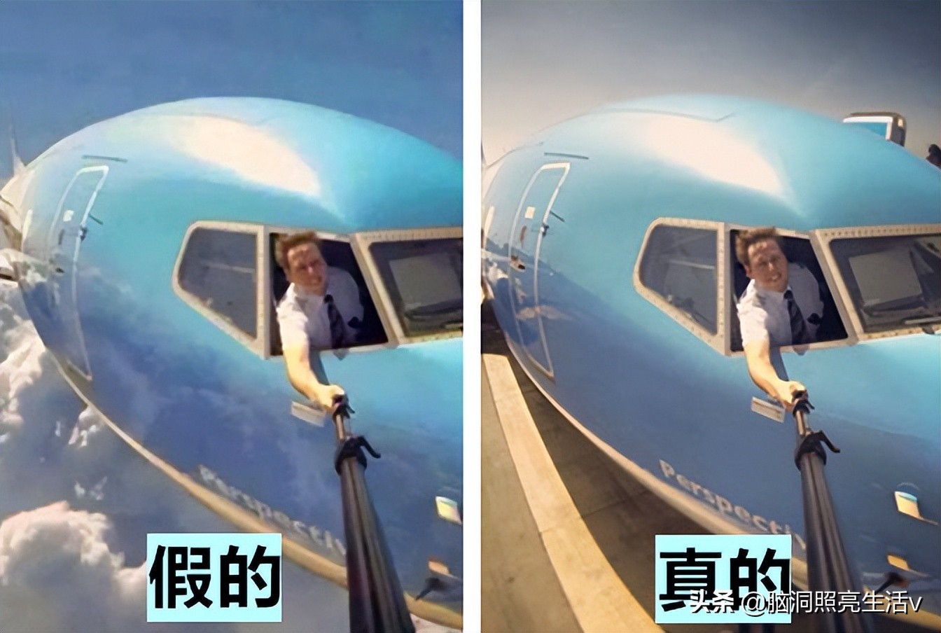 这张像病毒一样的照片,曾经在网上引起过巨大的轰动,照片里的这位飞行员,居然在空中打开机窗,然后用自拍杆进行自拍,看起来非常的疯狂,不过,后来经过证实,该照片是假的,实际上飞行员自拍照是在飞机停放时安全拍摄的,其实不用证实,只看照片就可以看出是假的,因为飞机在飞行中想要完成这样的自拍,是根本不可能做到的!