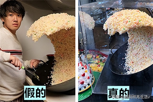 照片这名男人正在做蛋炒饭,但是让人感到奇怪的,锅里的蛋炒饭像瀑布一样悬浮在空中,不会掉下来,照片被发布到网上之后,迅速引起了人们的疯传,有的人这是男子变得魔术,但实际上并非如此,造成这样的现象,主要是因为他的蛋炒饭是假的,只是一个道具而已,如果你有兴趣,可以在网上购买到这样的道具!