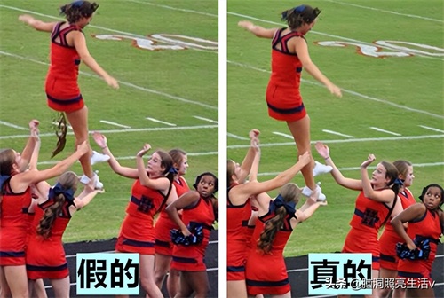 这是一张有味道的照片,只见这名拉拉队员被其他同伴抛到高空,而就在落下的时候,她居然拉大便了,顿时让下面的其他同伴感到惊讶和恶心,甚至有人想要逃跑,看起来很尴尬,可是这张照片并不是真的,而是有人恶作剧的后期合成的,真实的情况是这位拉拉队员并没有拉大便,只是在空中出现了失误,吓到了下面的同伴。