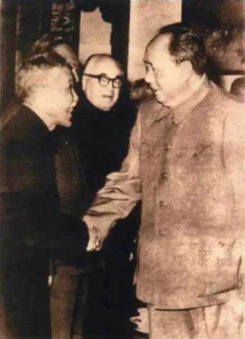 1957年3月,毛泽东主席在中南海颐年堂与翦伯赞亲切握手