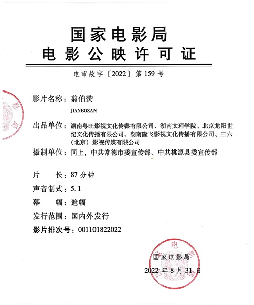 电影《翦伯赞》公映许可证