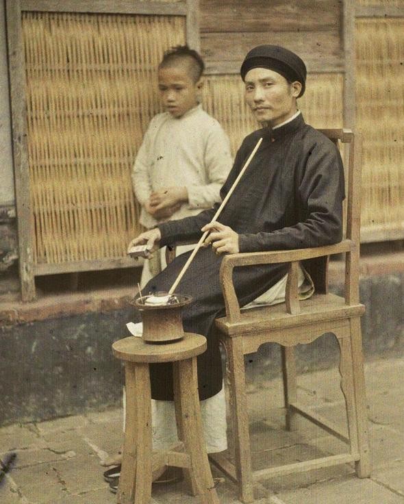 16、镜头下的清朝晚期 说书人和我们想象中完全不一样,从图中可以看出来的是一桌一长椅一壶水,靠自己的嘴来给人们带来快乐。