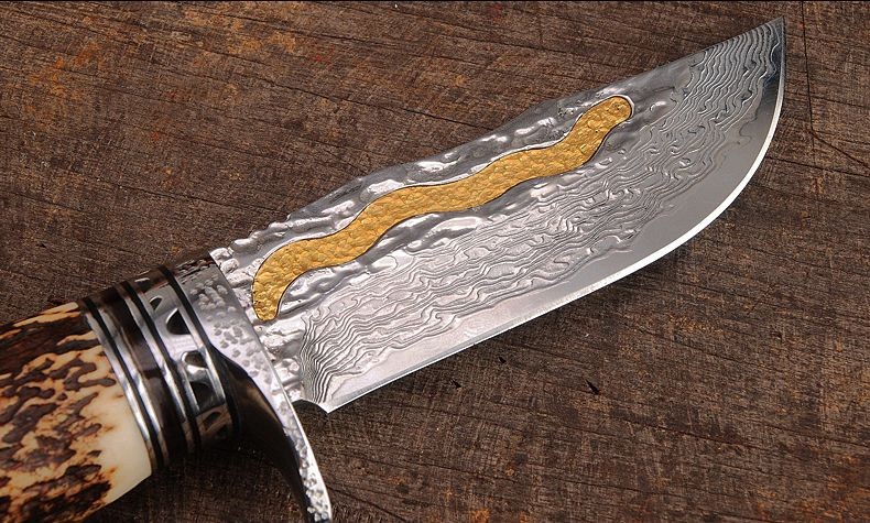 汉道金丝鹿角大马士革收藏刀