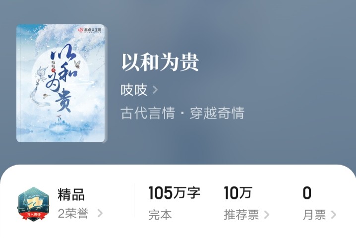 大家好,我是琴瑟花,非常高兴,今天又来为你推书了。大家平日说起古言大神吱吱,一般都会说《九重紫》,《金陵春》,《慕南枝》或者《庶女攻略》。但是有一本《以和为贵》很多人并不知道,所以今天我要推荐吱吱的这本旧作《以和为贵》。