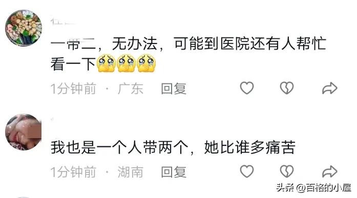 还有网友表示,只有当妈的才能明白这种痛苦,一个人带两个娃真的很难……