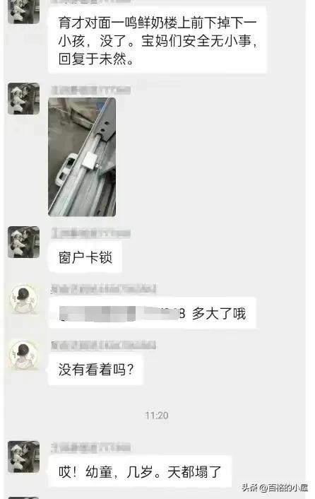 群聊内,有人表示这个事情就发生在育才对面一鸣鲜奶楼上,孩子才几岁大,没了,看到这些事情,群内宝妈也是难受不已,一直在说安全无小事。