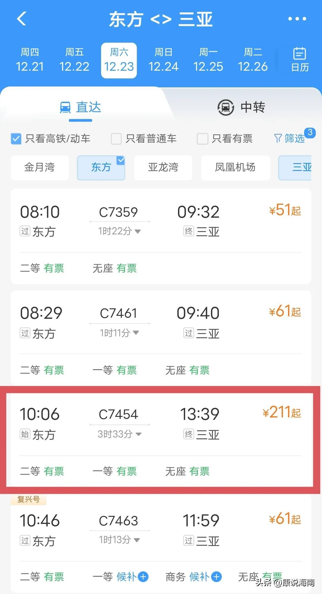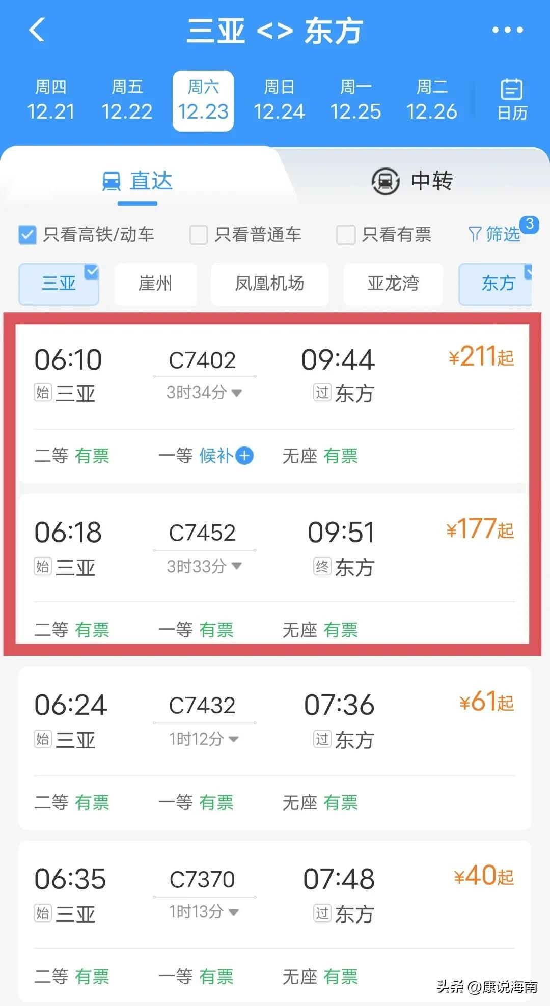 但是在实际的体验过程中,却存在不小差异,同样是从三亚到东方的高铁,有的车次是1个多小时,有的车次却高达3个多小时。