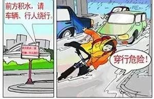 雨天当地上有积水的时候,尽量避免走积水较多的地方,预防积水中有下水道排水口或者阻挡物。