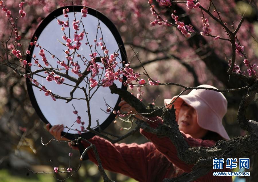 2月19日,摄影爱好者在南京梅花山拍摄梅花。