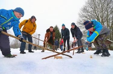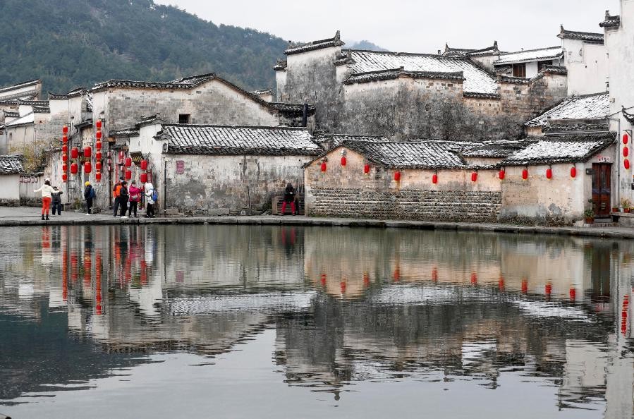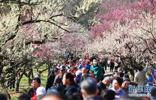 2月19日,游人在南京梅花山赏花(无人机照片)。