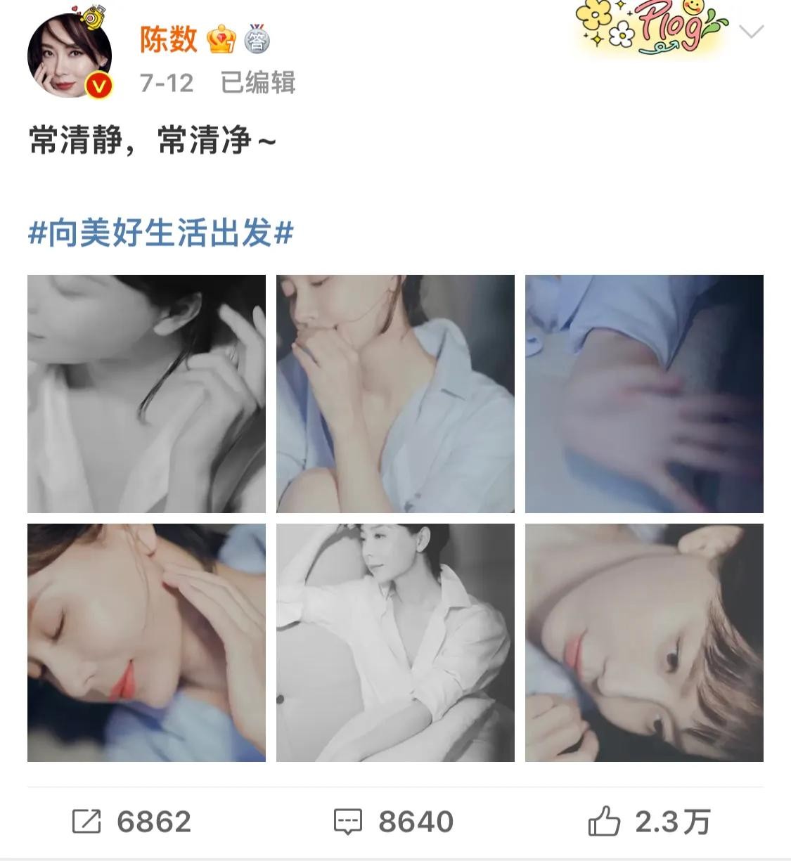 就在王柳都在质疑,为什么会变成这样的时候?陈数连着两天账号都更新了,一组是写真照,一组是不露脸的生活照。写真很好看,但是照片中的样子,失去了他原有的味道。