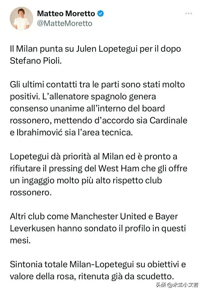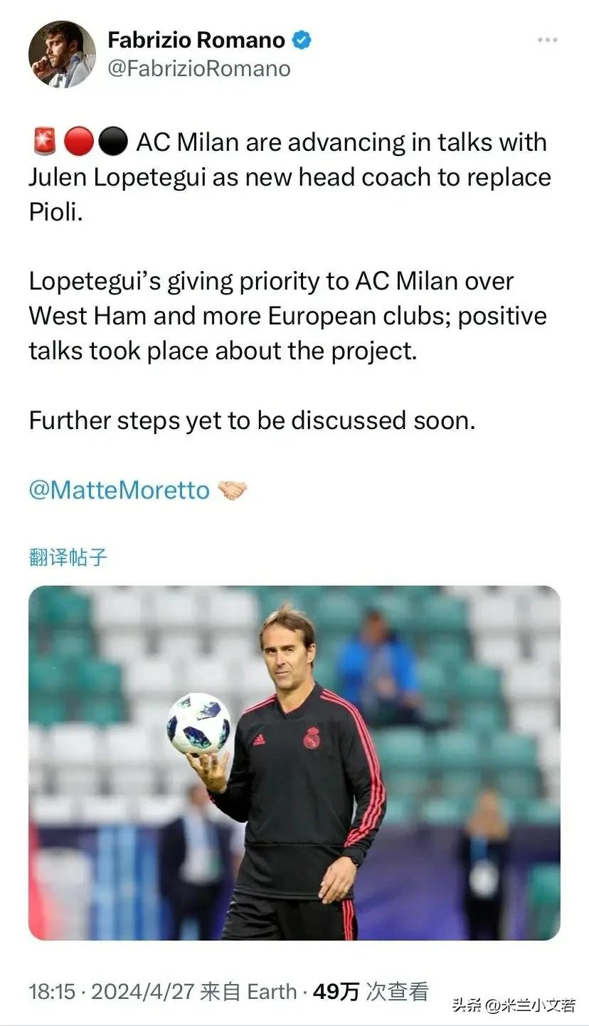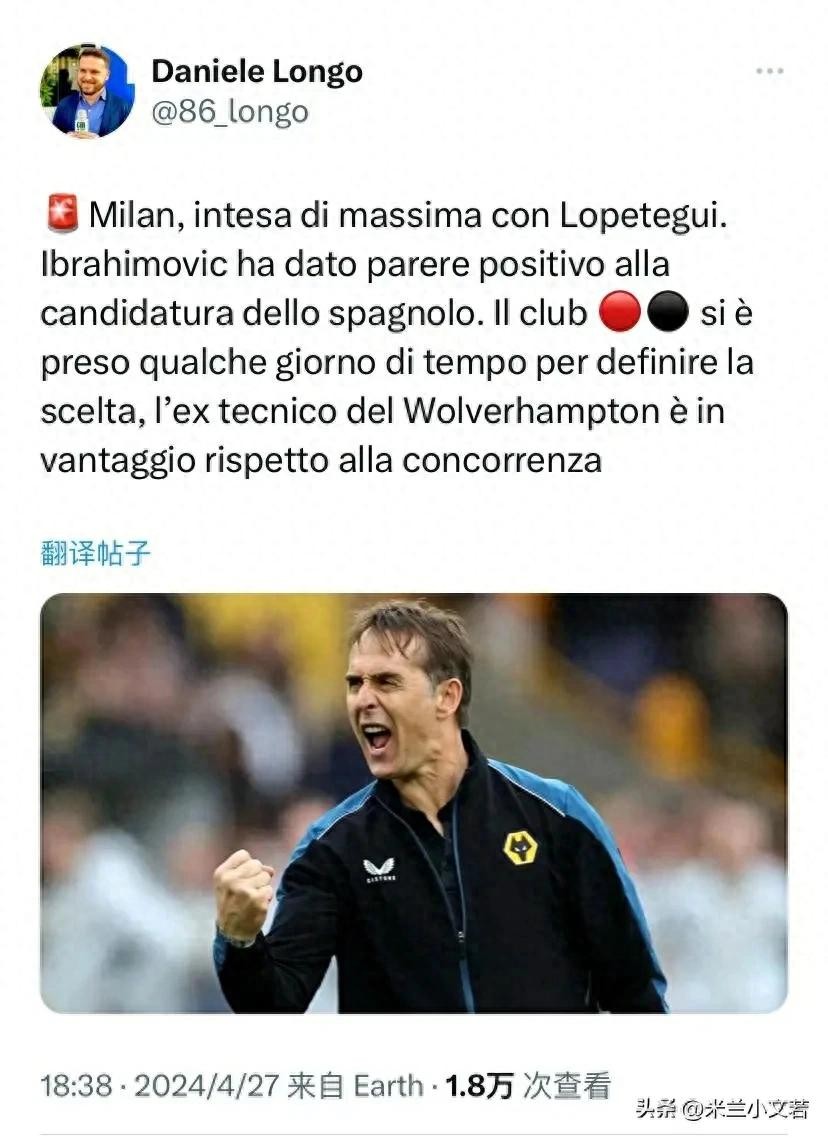 如果没有意外,米兰的选择就是洛佩特吉,您对洛佩特吉满意吗?我说说我了解的教练洛佩特吉。先说结论,以青训为中心和基础,以培养年轻人为重心,建新球场扩大市场,这些思路洛佩特吉没问题!从技战术层面来看,洛佩特吉也擅长,唯一问题就是他之前一直带的是西班牙青年队,他在西班牙国家队与皇家马德里确实不大成功,消息说原因是洛佩特吉镇不住场子,他性格太软,不是铁腕治军的人物,这个也是唯一的担忧,米兰这些球员个人觉得还是要有镇场子的人物。