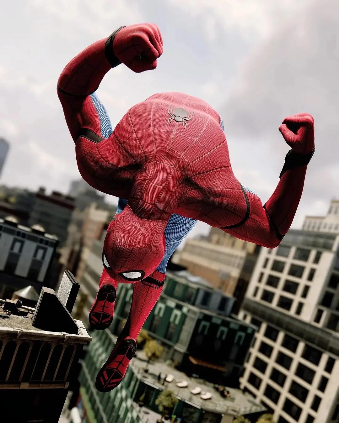 再来一组背身版,这一组背后的蜘蛛标志,根据战服的样式蜘蛛的形态也不相同,白色的蜘蛛标志最好看!紧身的战服从背部看出蜘蛛侠的身材非常棒!