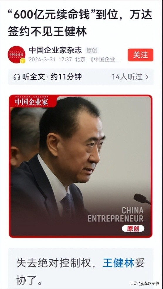 虽然是万达现如今的出路,并且也一定是王健林所愿意看到的,但是在双方和谈之后,进行签约的时候,哇嘎建林并未现身,这让众人也感到了王健林的悲哀吧。