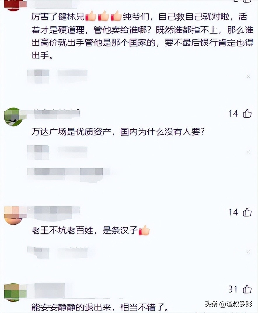 但是也有人表示,王健林这样的行为也是一个真正企业家的体现,为了还债壮士断腕,出售商场资产,但是他始终没有放弃还债,这与其他人相比,也算是有良心的人了。