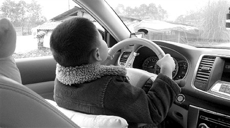 原标题:湖南一小男孩开车上路 网友责其父不负责
