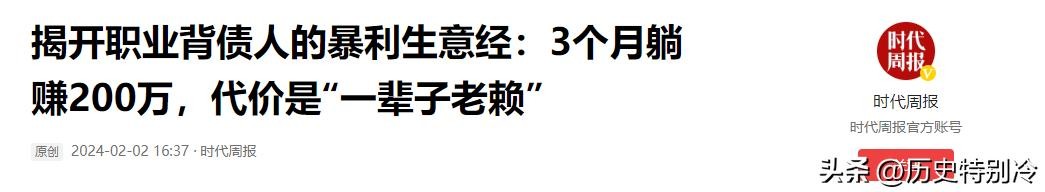 时代周报:2024年2月2日,《揭开职业背债人的暴利生意经:3个月躺赚200万,代价是“一辈子老赖”》