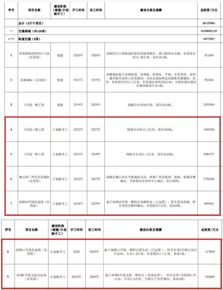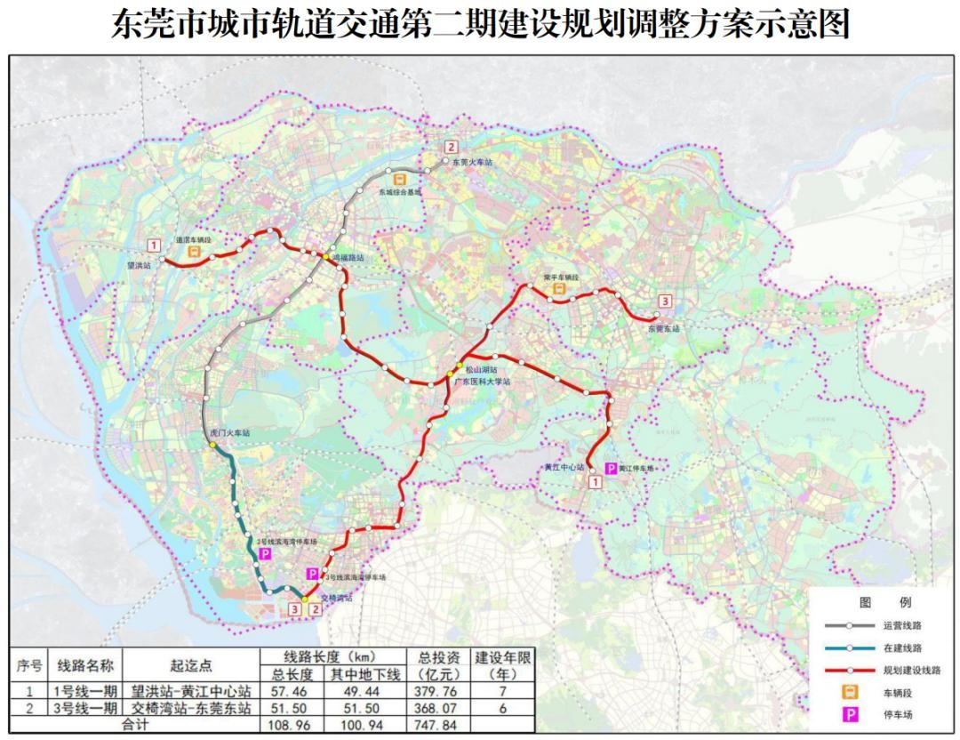 包含东莞地铁2号线三期在内,6条地铁线路工程总投资近千亿,最早今年开工,最晚2024年开工!