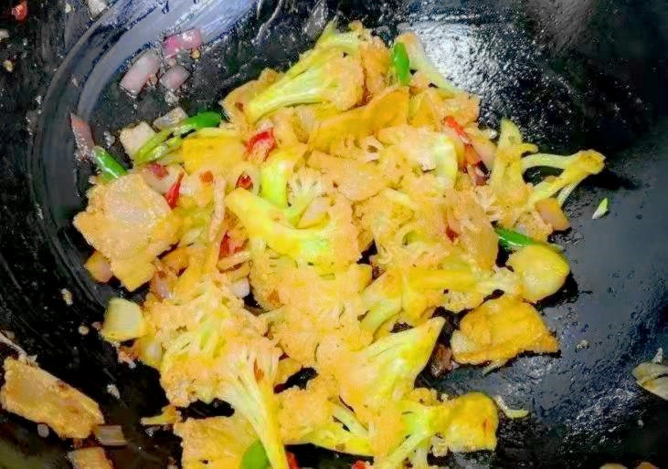 3、菜花含有嘌呤炒制时分水处理后加入姜、蒜直接炒出来效果也很好。