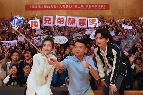 秦岚和陈晓出席电影【睡在我上铺的兄弟】活动与导演合照。
