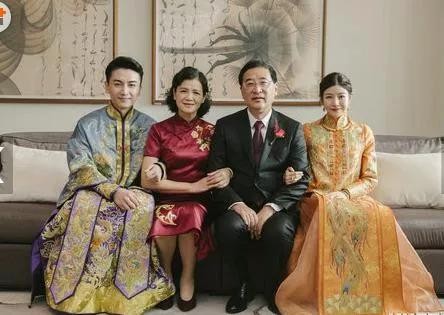 陈晓,陈妍希夫妇和父母合影照片