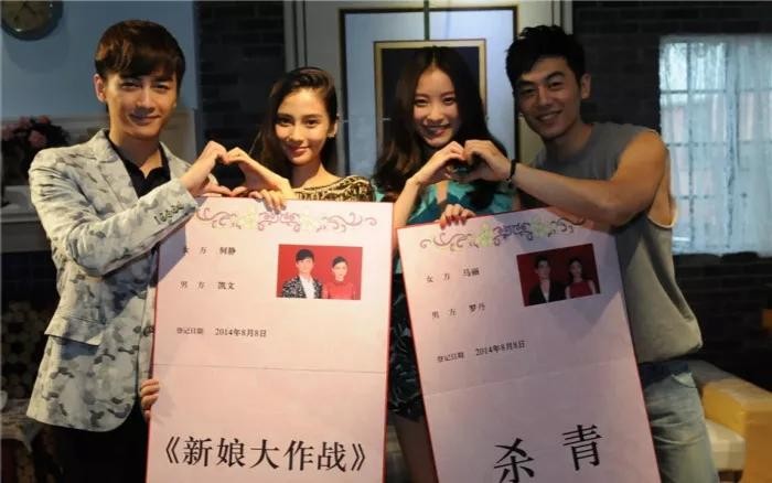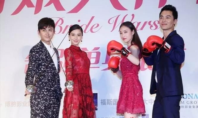 电影《新娘大作战》,陈晓,杨颖,倪妮和朱亚文合影照。